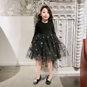 New 3-8 Girls Dress Butterfly Kids Long Sleeve Dresses Baby
