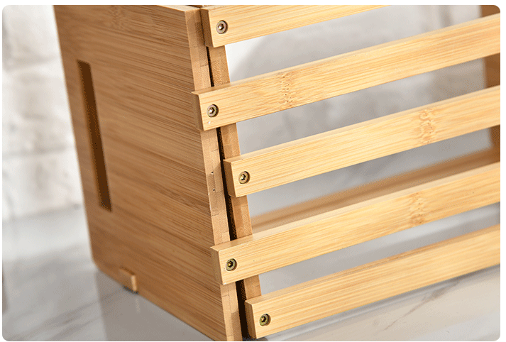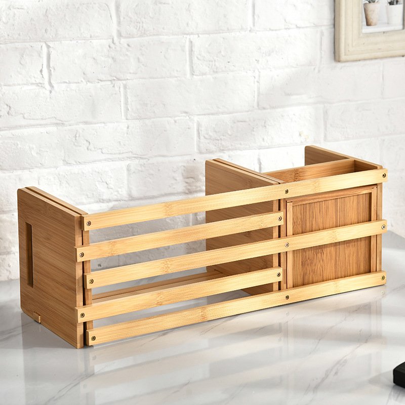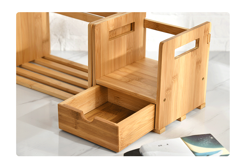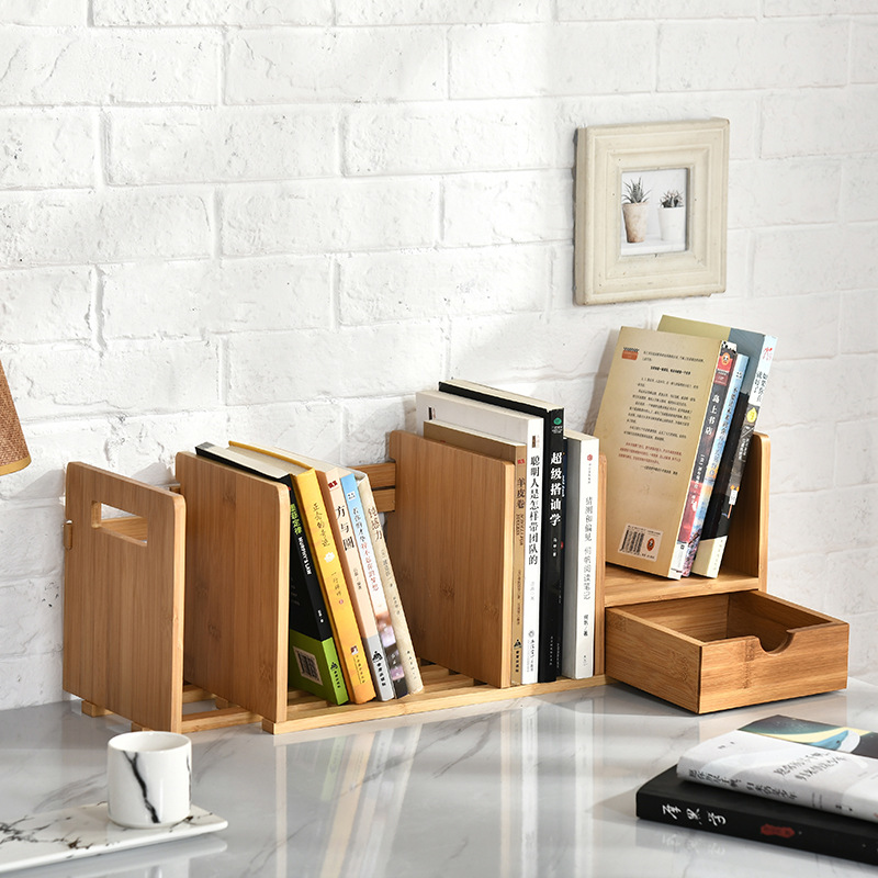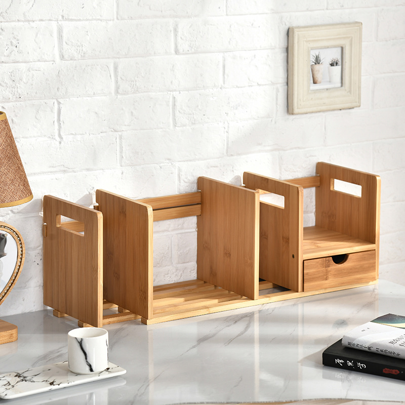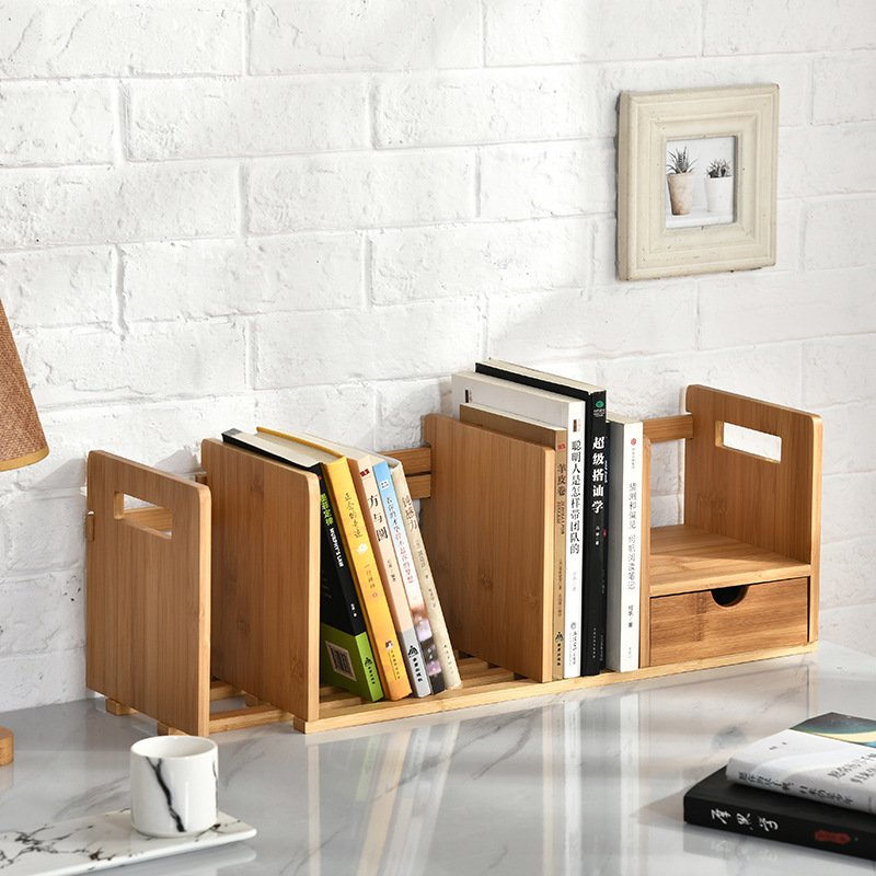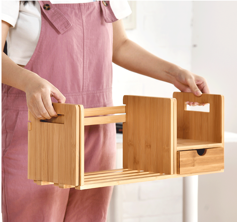 Bamboo And Wooden Telescopic Small Bookcase With Drawers