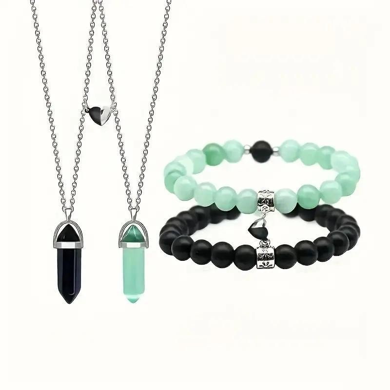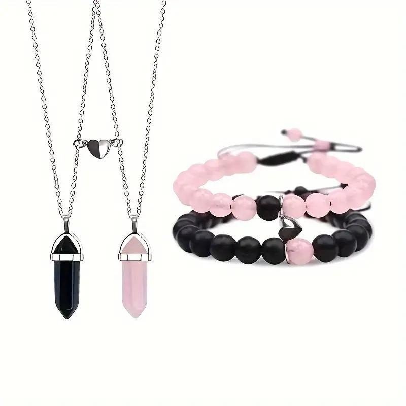 Color: 2 pieces white black bracelet suit, 2 pieces white black necklace suit, 4 pieces white black bracelet and necklace set suit, 2 pieces pink and black bracelet suit, 2 pieces pink and black necklace suit, 4 pieces pink and black bracelet and necklace set suit, pink and black magnet bracelet two-piece set, pink and black magnet necklace two-piece set, pink and black magnet bracelet necklace four-piece set, blue and black bracelet two-piece set, blue and black necklace two-piece set, four sets of blue and black bracelet and necklace, two sets of green and black bracelet, two sets of green and black necklace, four sets of green and black bracelet and necklace, two sets of purplish red and black bracelet, two sets of purplish red and black necklace, four sets of purplish red and black bracelet and necklace, purple and Black bracelet two-piece set, purple and black necklace two-piece set, purple and black bracelet necklace four-piece set