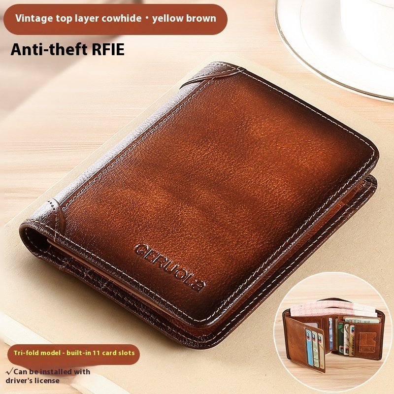 Genuine Leather Anti-theft Swiping Ultra-thin Cheng E Wallet