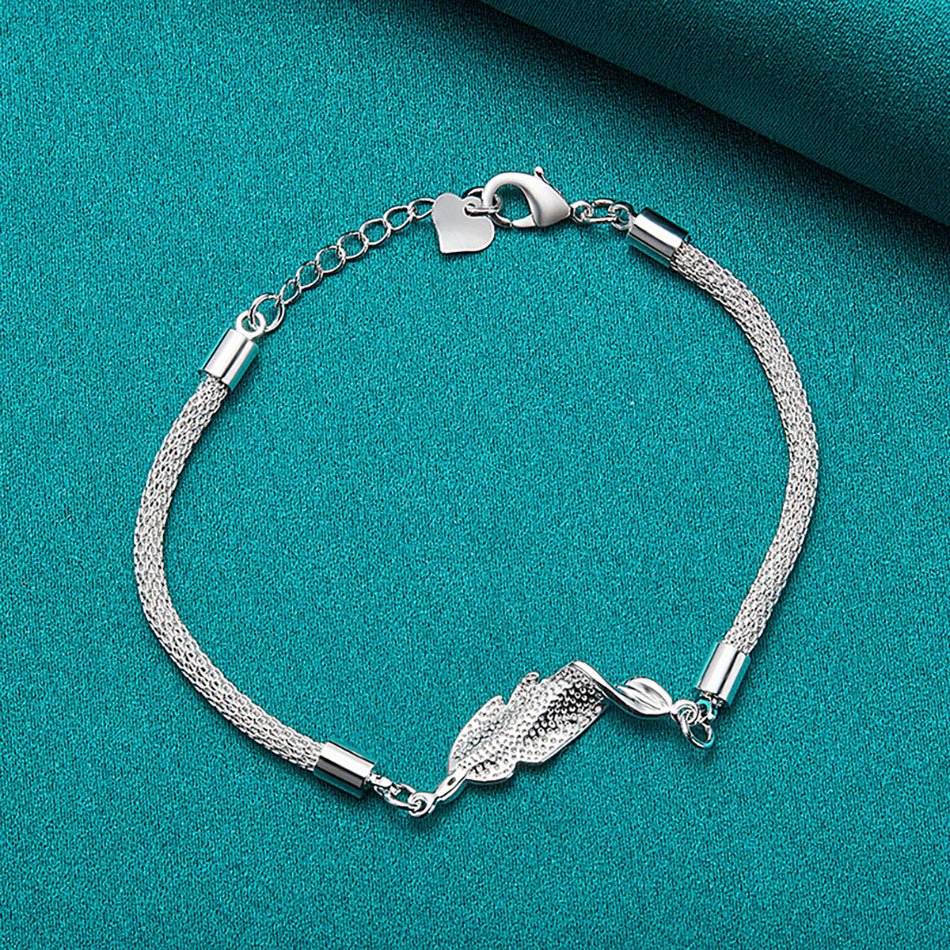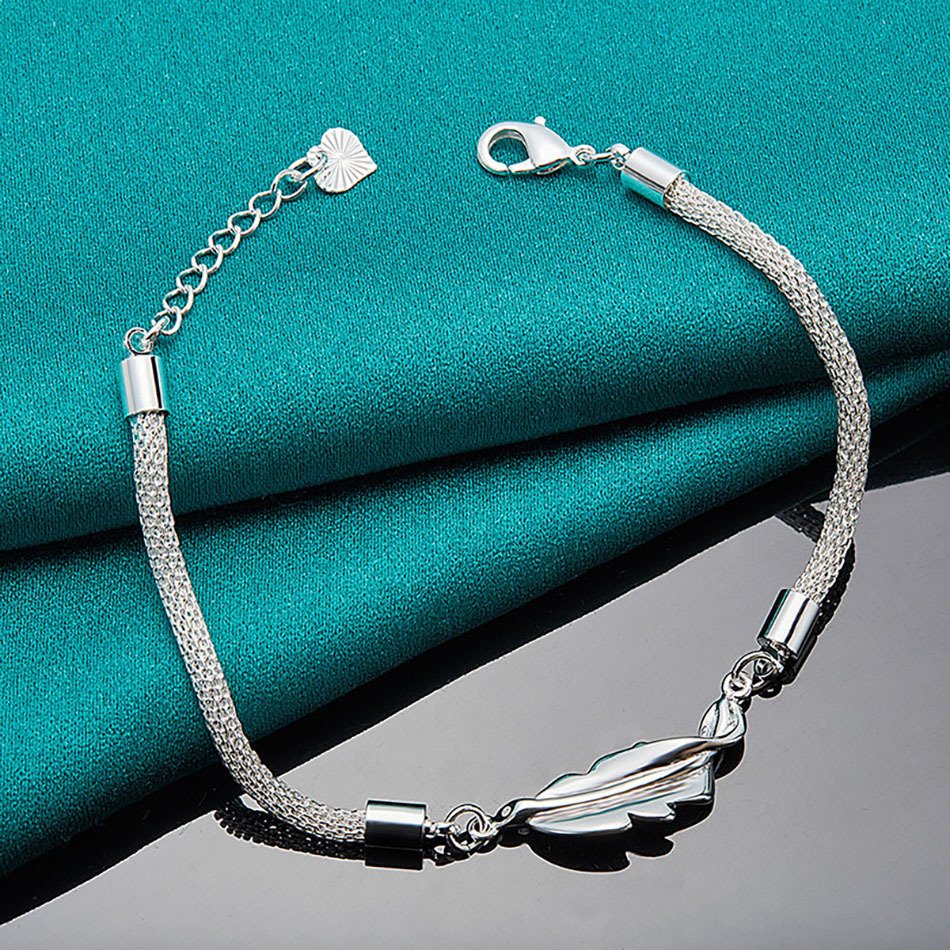 Silver Jewelry Hollow Fine Mesh Hanging Leaf Bracelet