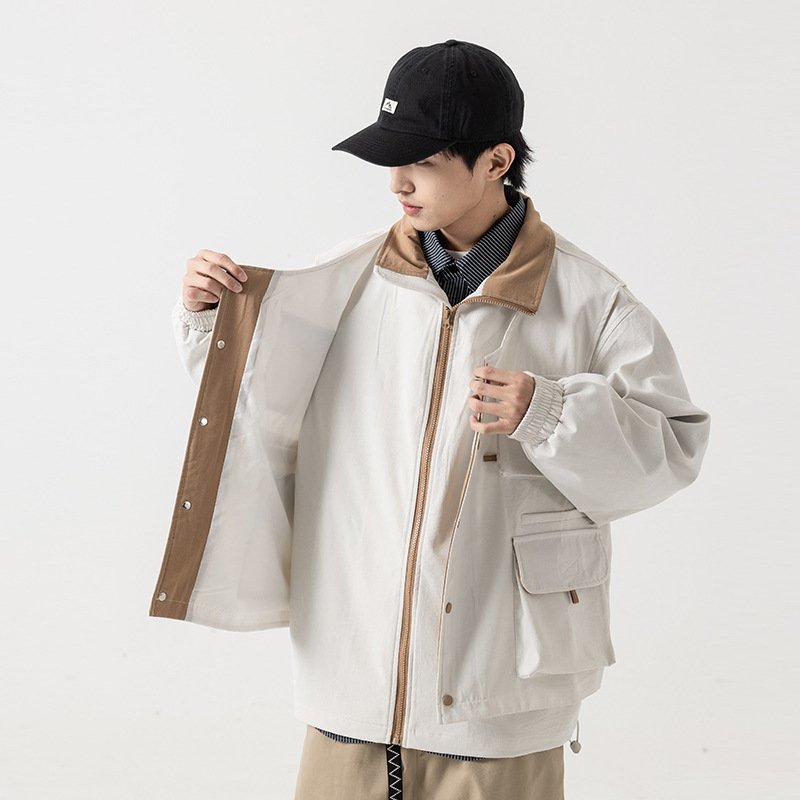 Be the first to review “Stand Collar Loose Multi-pocket Charge Jacket Retro Fake Two-pieces Coats”