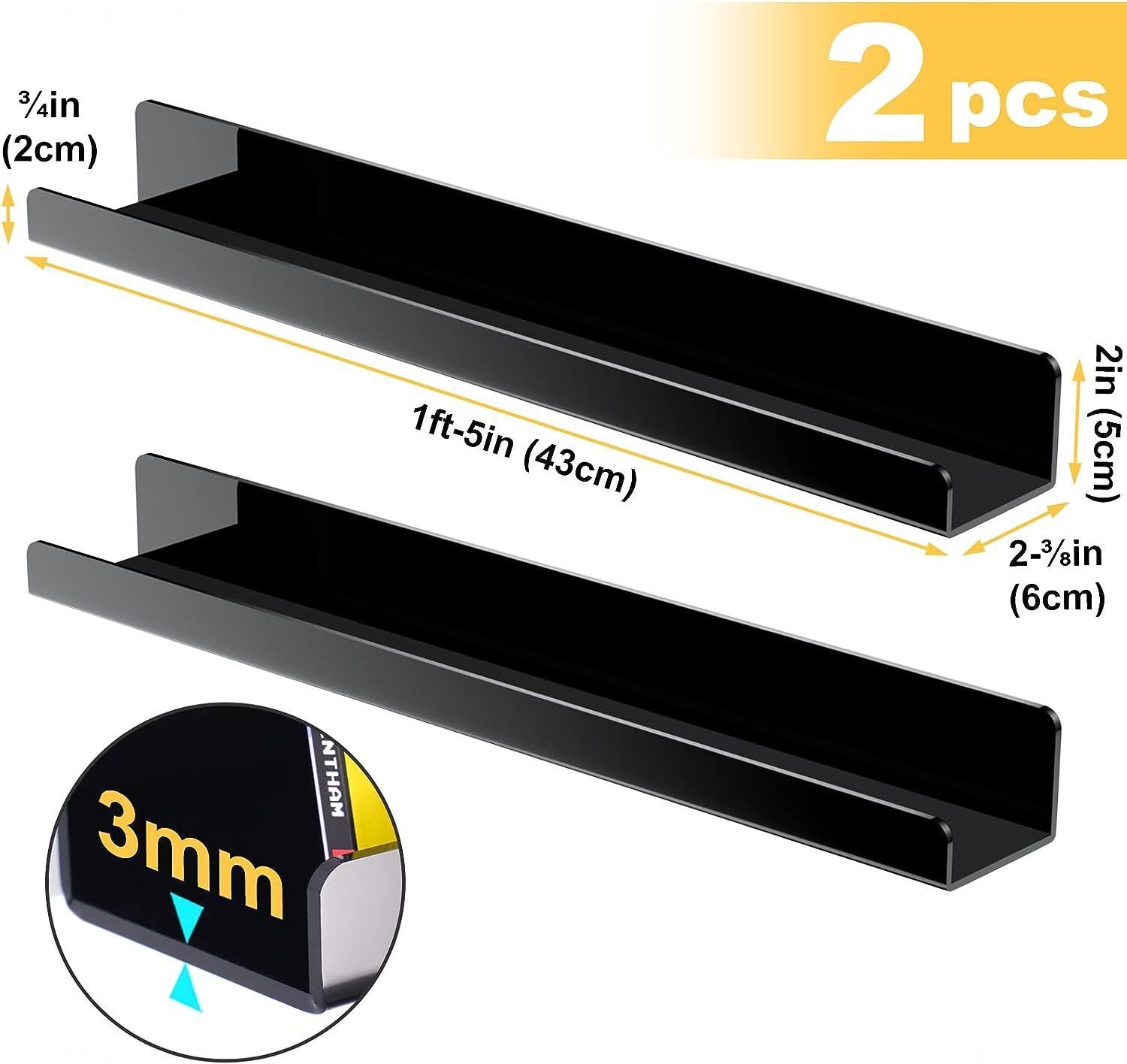 Large size: Each pack contains 2 magnetic bookshelves. Dimensions: 16.92 inches (depth) x 1.96 inches (width) x 2.36 inches (height). It can better hold all kinds of books, including larger picture books for children, etc.