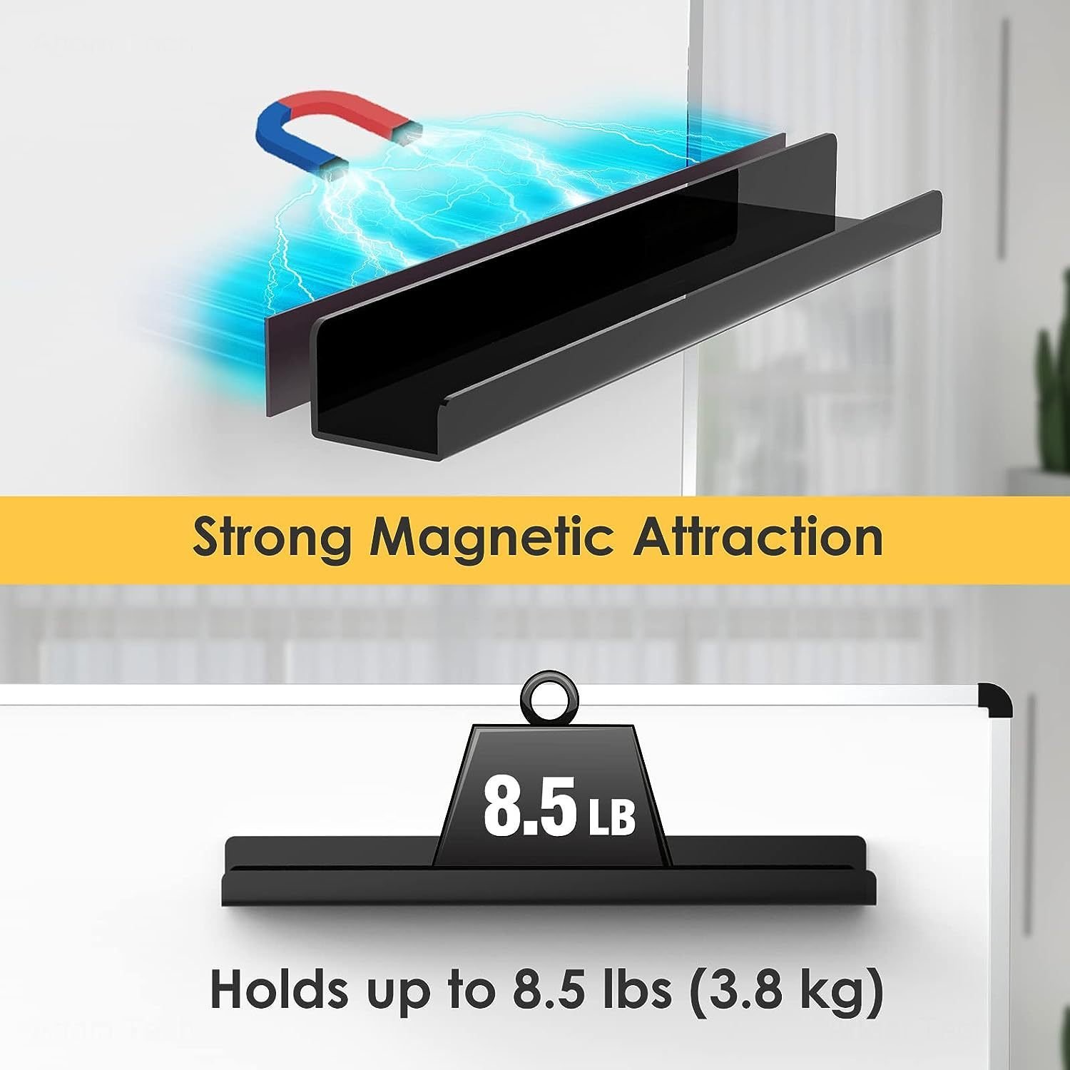 Easy to install: This acrylic bookcase adopts magnetic design, no other tools needed. Just tear off the film on the surface and place it on the desired whiteboard. Super strong magnet with a thickness of 2mm on the back can bear about 3.8kg without falling off.
