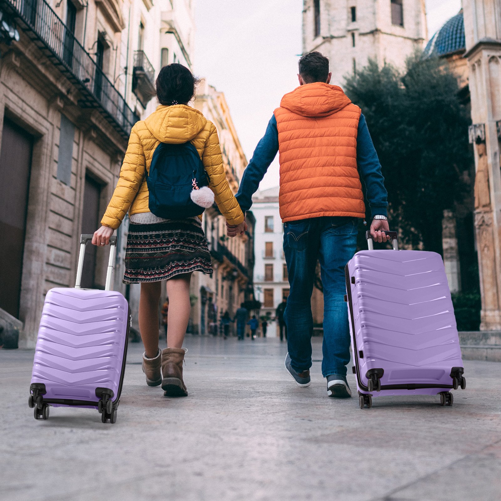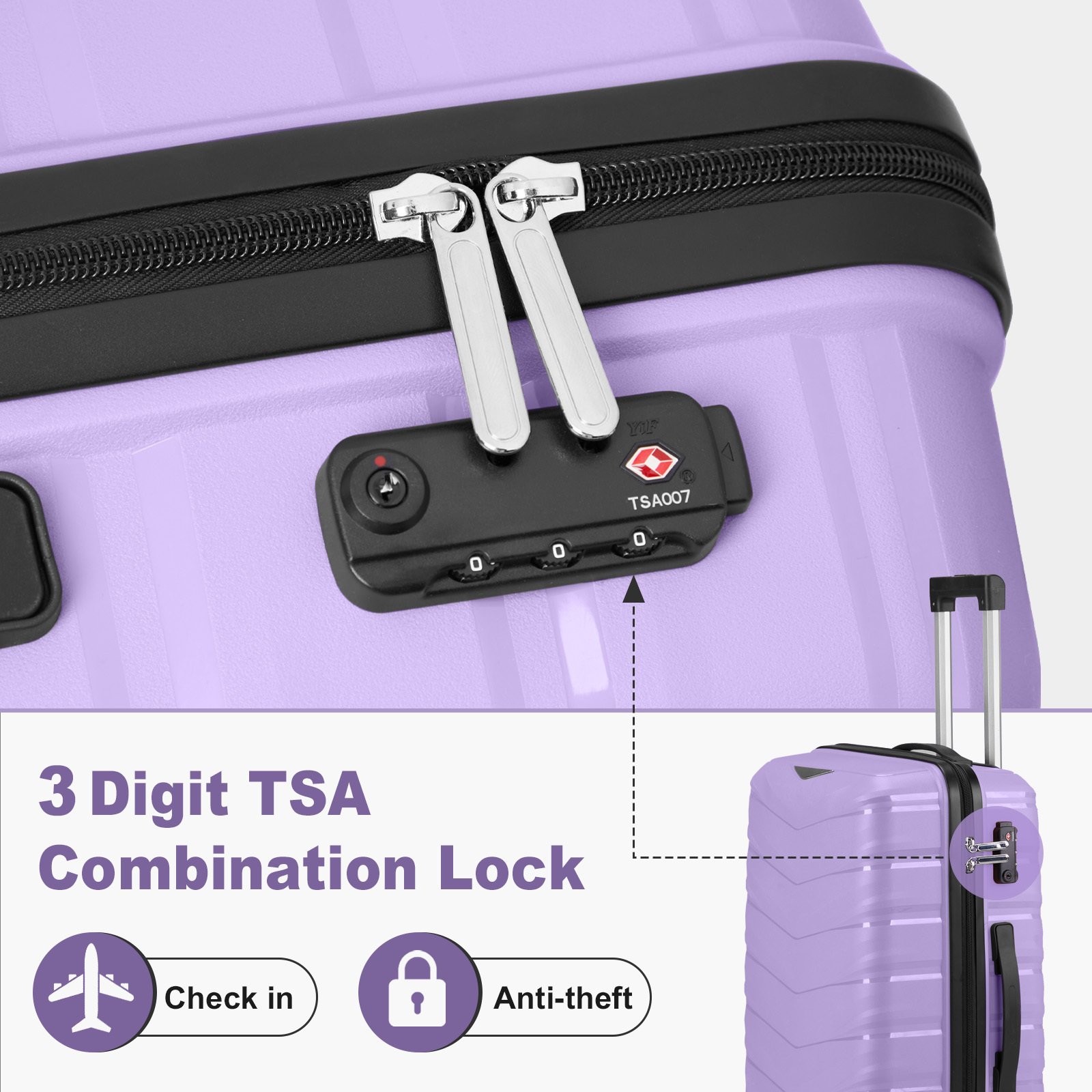 V-Striped 3-in-1, PP Trolley Case, 20in 24in 28in, Fashionable Colour – Taro Purple