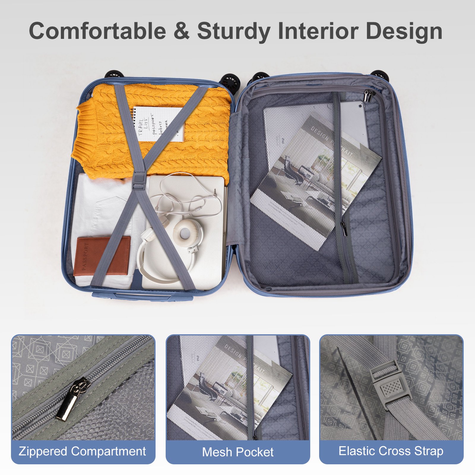 6.Expandable 20 inch Suitcase: Open the smooth and durable expandable zipper, can expand the capacity of the suitcase by 20%. Soft handles on the top and sides of the luggage help you lift the suitcase easily without hurting your fingers.