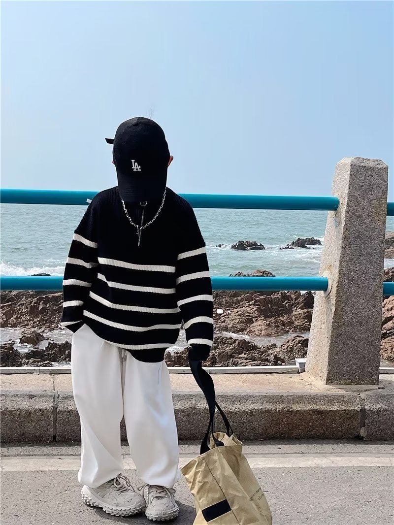 Be the first to review “Western Style Pullover Half Zipper Striped Sweater”