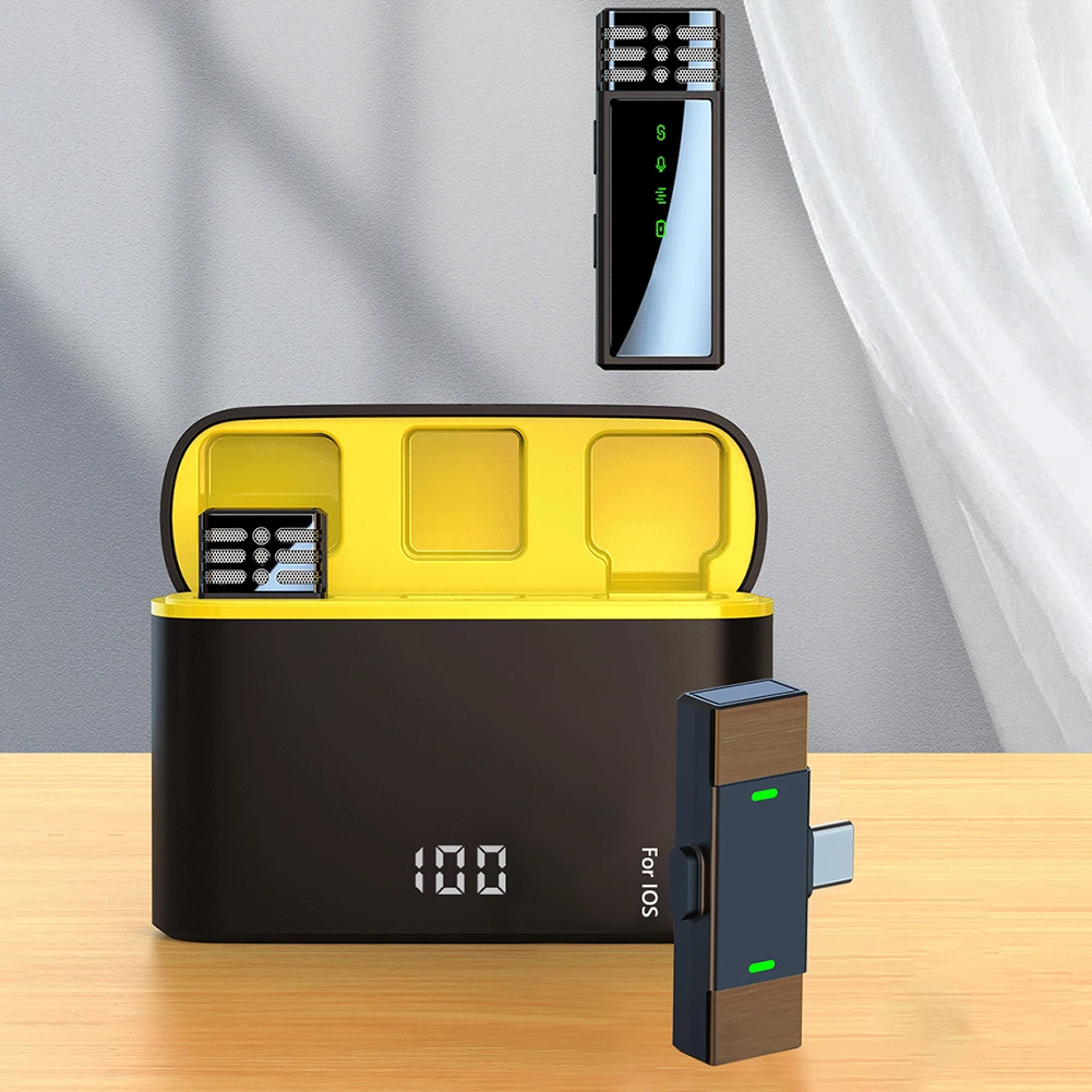 This product is a smart wireless microphone that provides professional-level recording output. Plug and play, no APP required. Multiple uses: It can be used in online live broadcast, video Vlog shooting, program interviews, interview recordings, video teaching and other occasions.