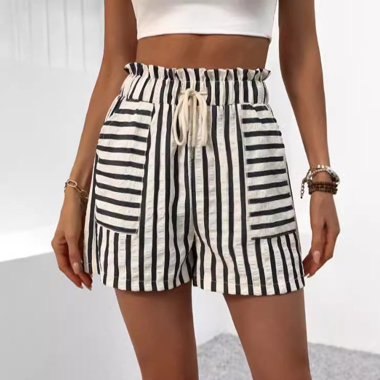 Be the first to review “Women’s Fashion Striped Casual Loose Elastic Belt Shorts”